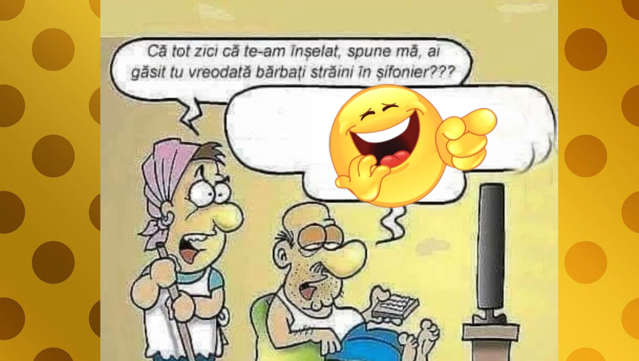 Bancul începutului de săptămână. Este luni dimineață și este recomandat să vă începeți ziua cu zâmbetul pe buze. Vă delectăm cu bancuri savuroase, iar de data aceasta avem în prim-plan un dialog între doi soți. Ea îl întreabă pe el dacă a găsit vreodată străini în casă, fiind acuzată de infidelitate. Spor la râs!