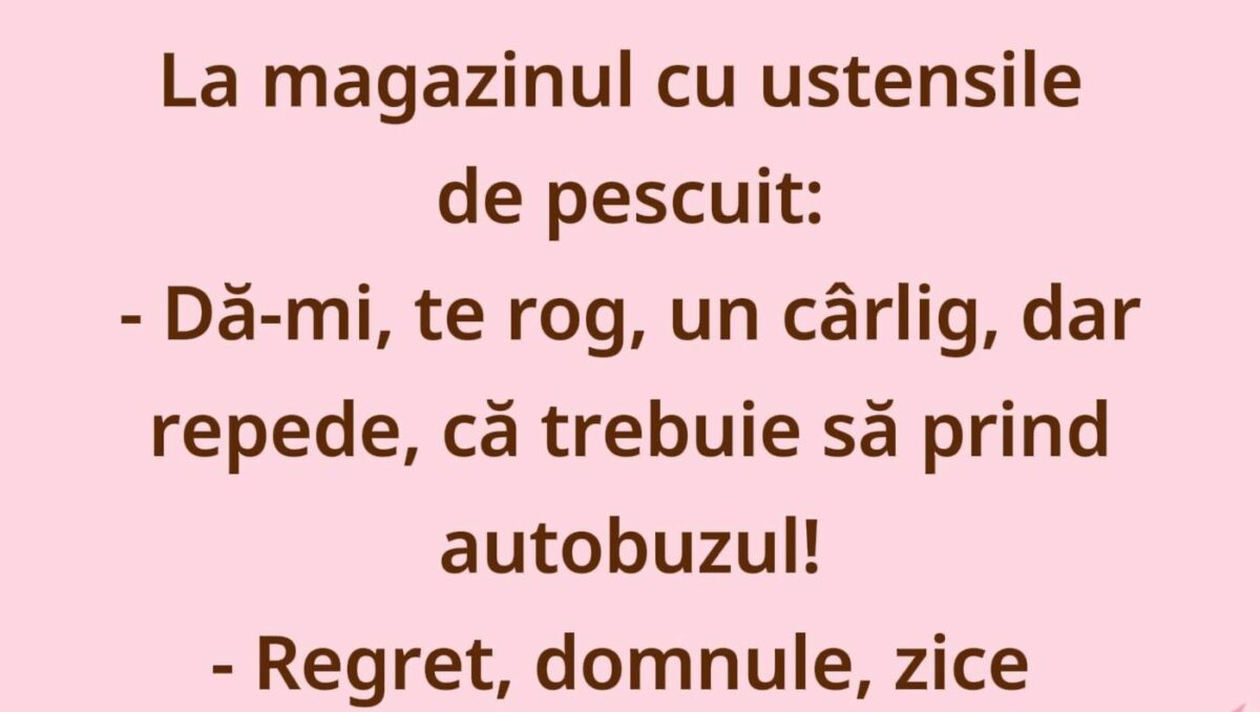 – Dă-mi, te rog, un cârlig, dar repede, că trebuie să prind autobuzul!