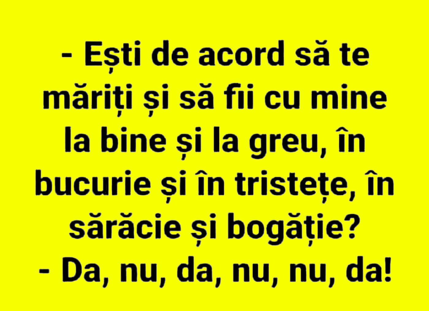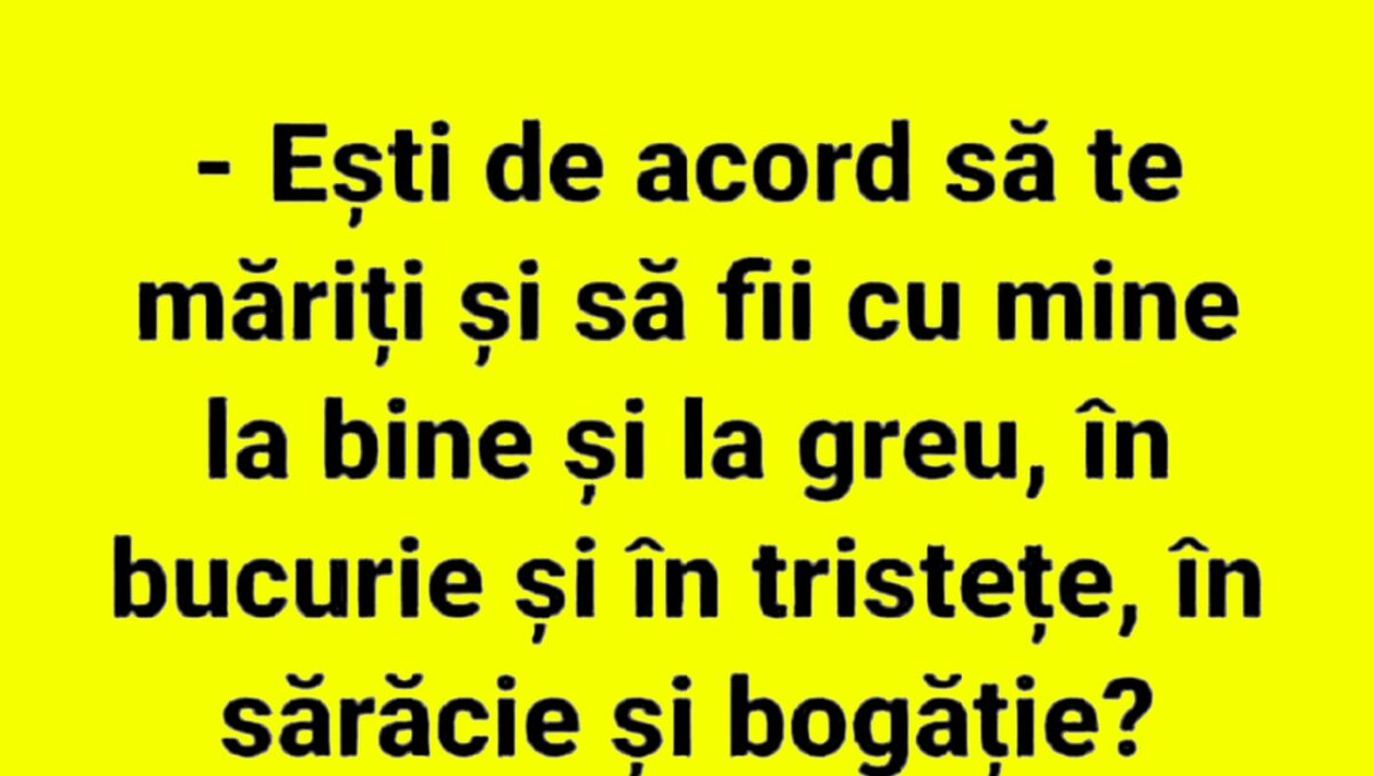 Nu trebuie să treacă nicio zi fără o porție copioasă de râs, iar pentru asta am pregătit un banc care cu siguranță îți va aduce zâmbetul pe buze. Protagonistul de astăzi își cere iubita în căsătorie, iar deznodământul este hilar.