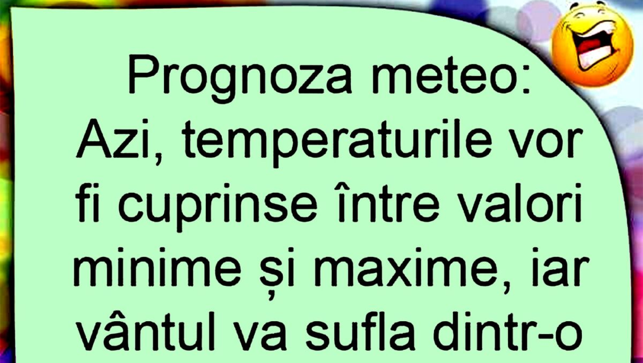 Dragă cititorule, pentru astăzi, CANCAN.RO ți-a pregătit bancul sfârșitului de săptămână, cea mai tare glumă de vineri. Vezi care este prognoza meteo la români. Râzi cu lacrimi!