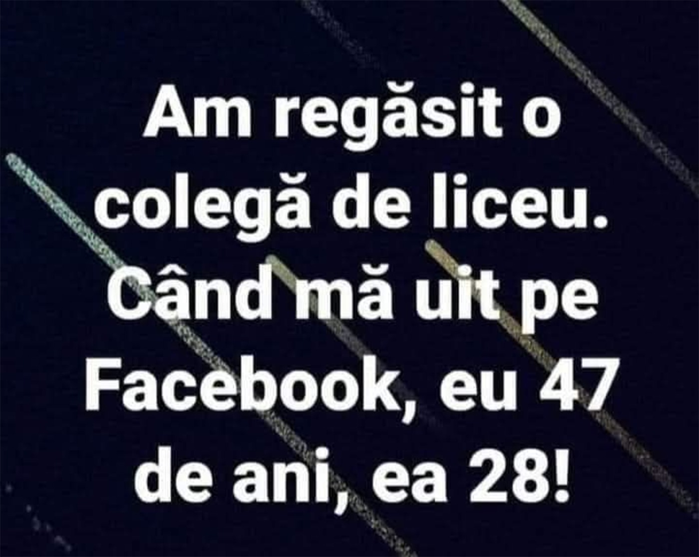 „Am regăsit o colegă de liceu. Când mă uit pe Facebook, eu 47 de ani, ea 28!”