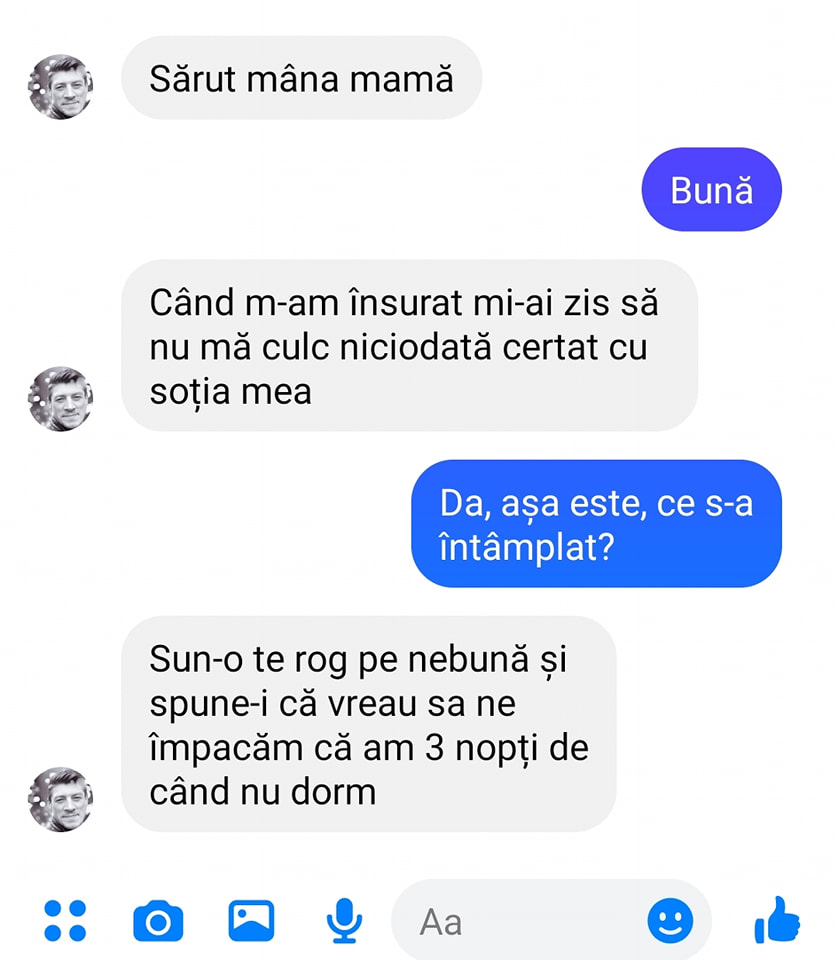 -Când m-am însurat mi-ai zis să nu mă culc niciodată certat cu soţia mea