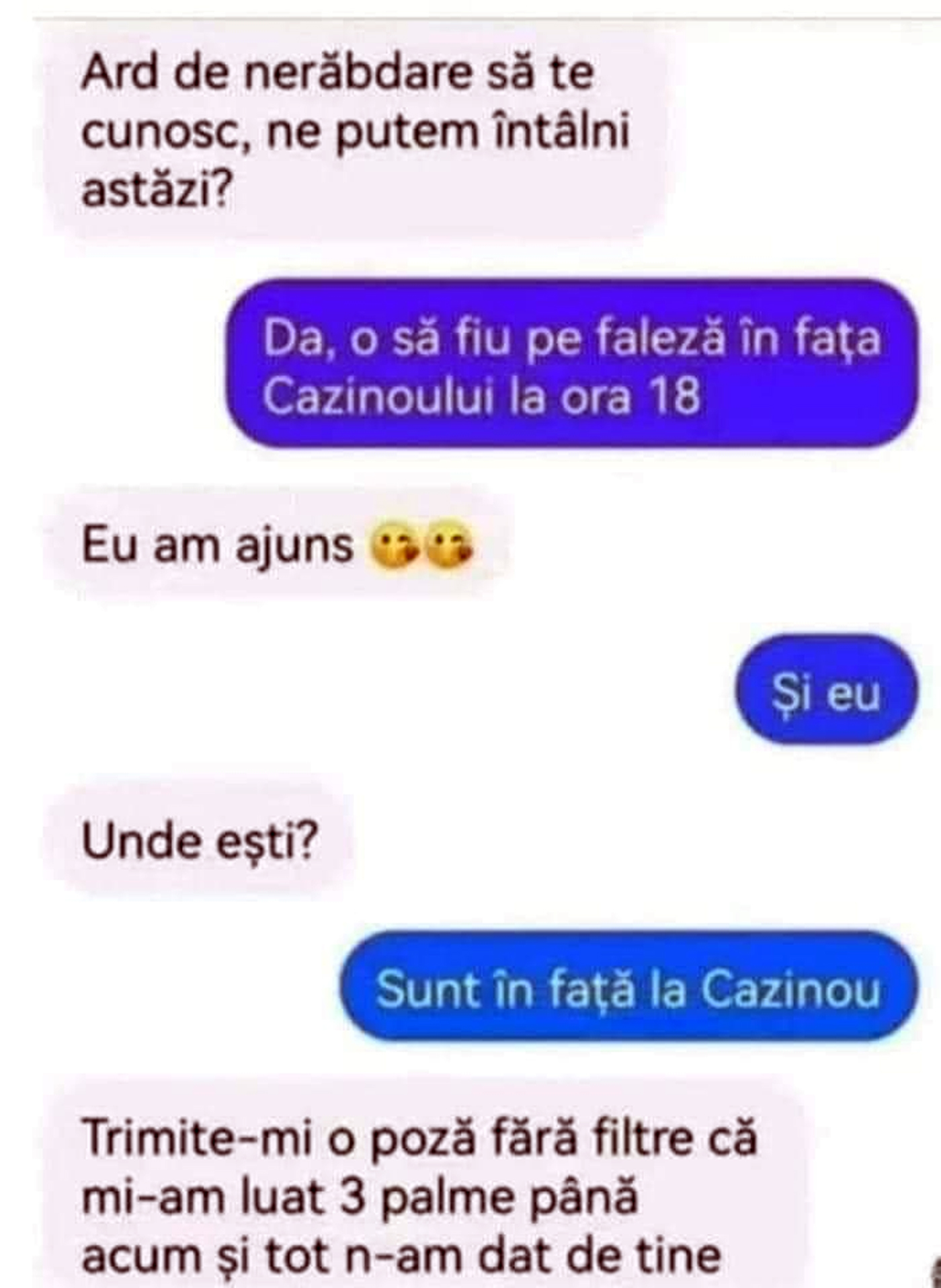 -Trimite-mi o poză fără filtre că mi-am luat 3 palme până acum și tot n-am dat de tine.