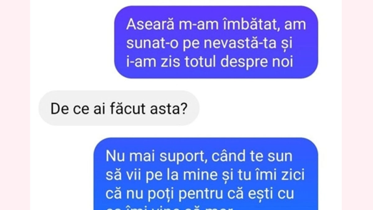 – Aseară m-am îmbătat, am sunat-o pe nevastă-ta și i-am zis totul despre noi.