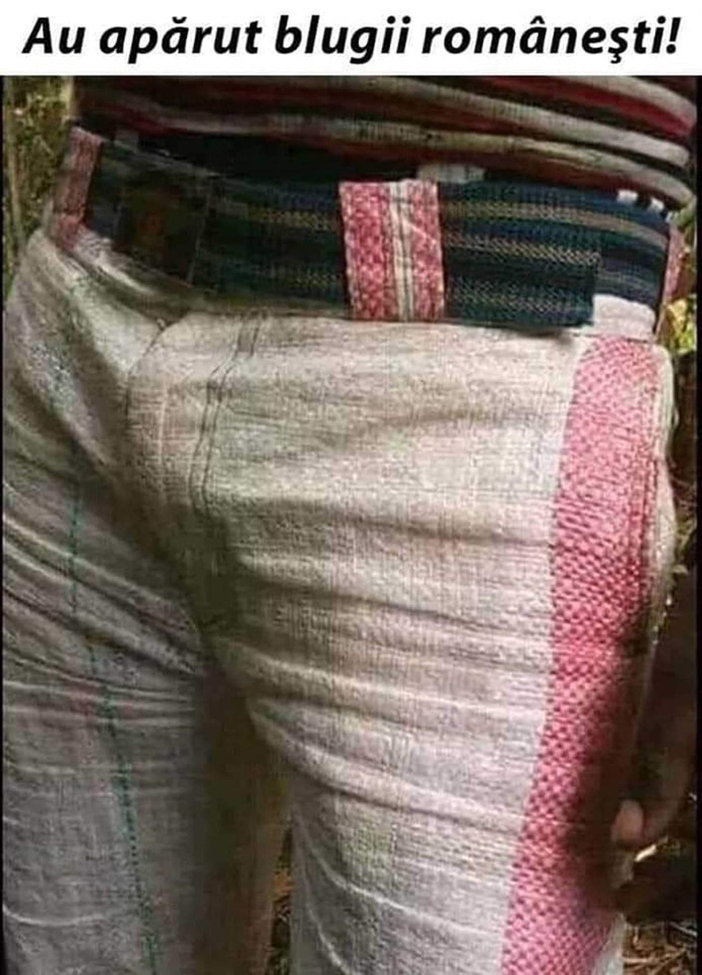 Un român inventiv și-a creat blugi dintr-o sacoșă de rafie.