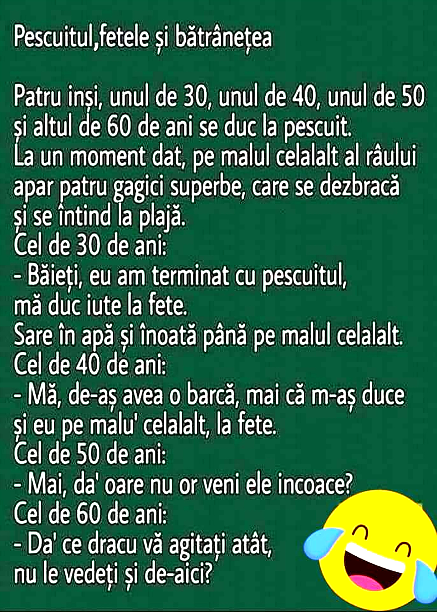 – Băieți, eu am terminat cu pescuitul, mă duc iute la fete.