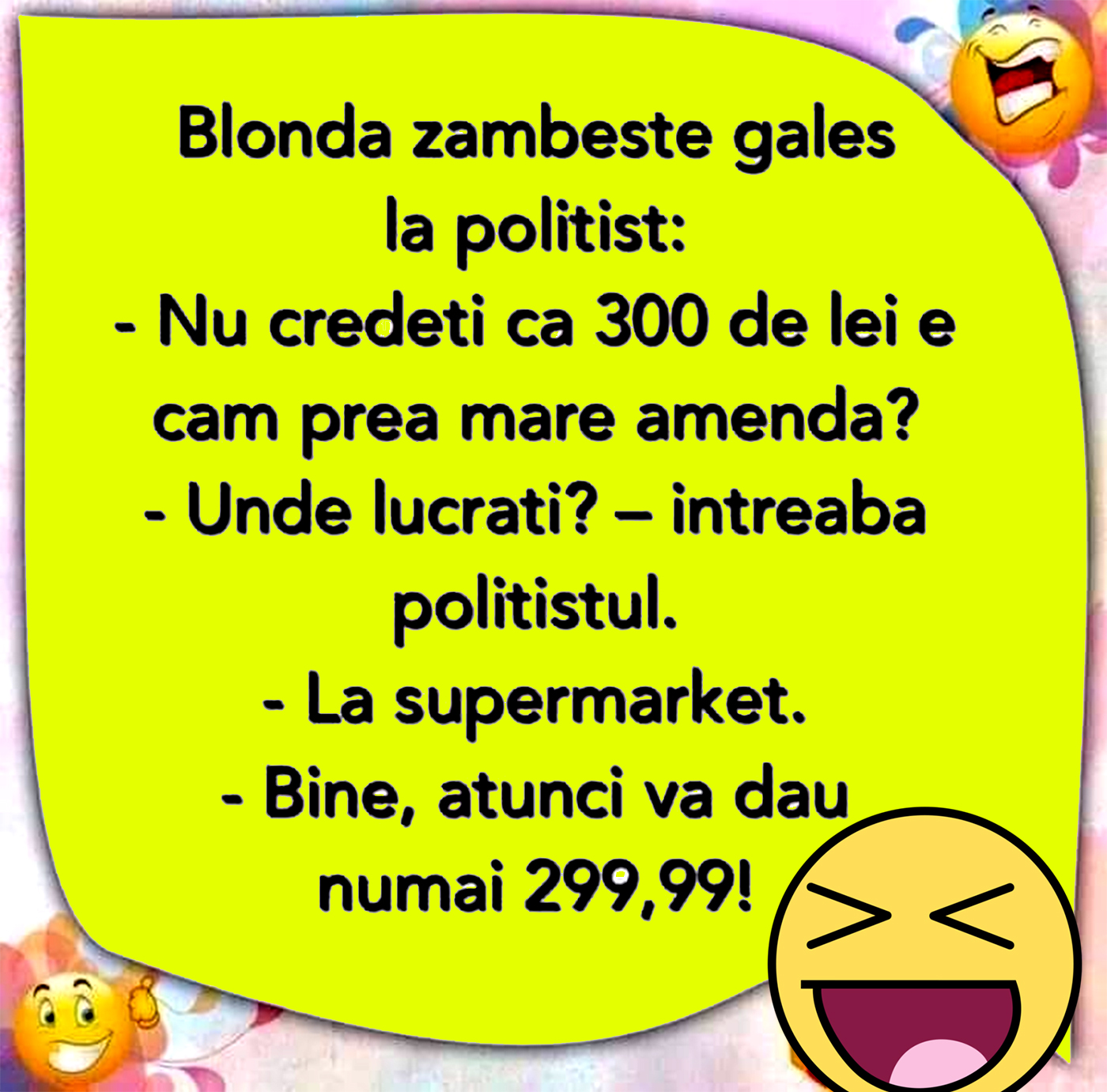 Bancul zilei redă schimbul amuzant de replici dintre o blondă și un polițist. Râsul este garantat!