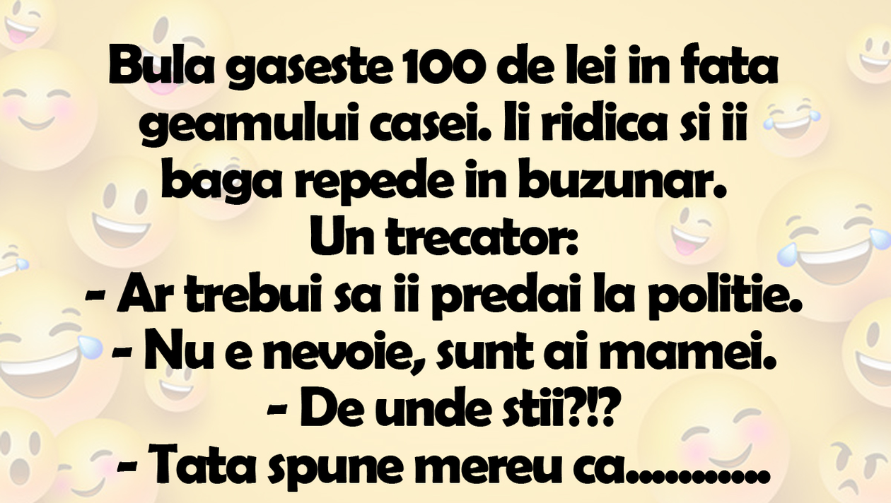 Banc. Vă îndulcim prima zi de weekend cu o serie de bancuri cu Bulă! Spor la râs!