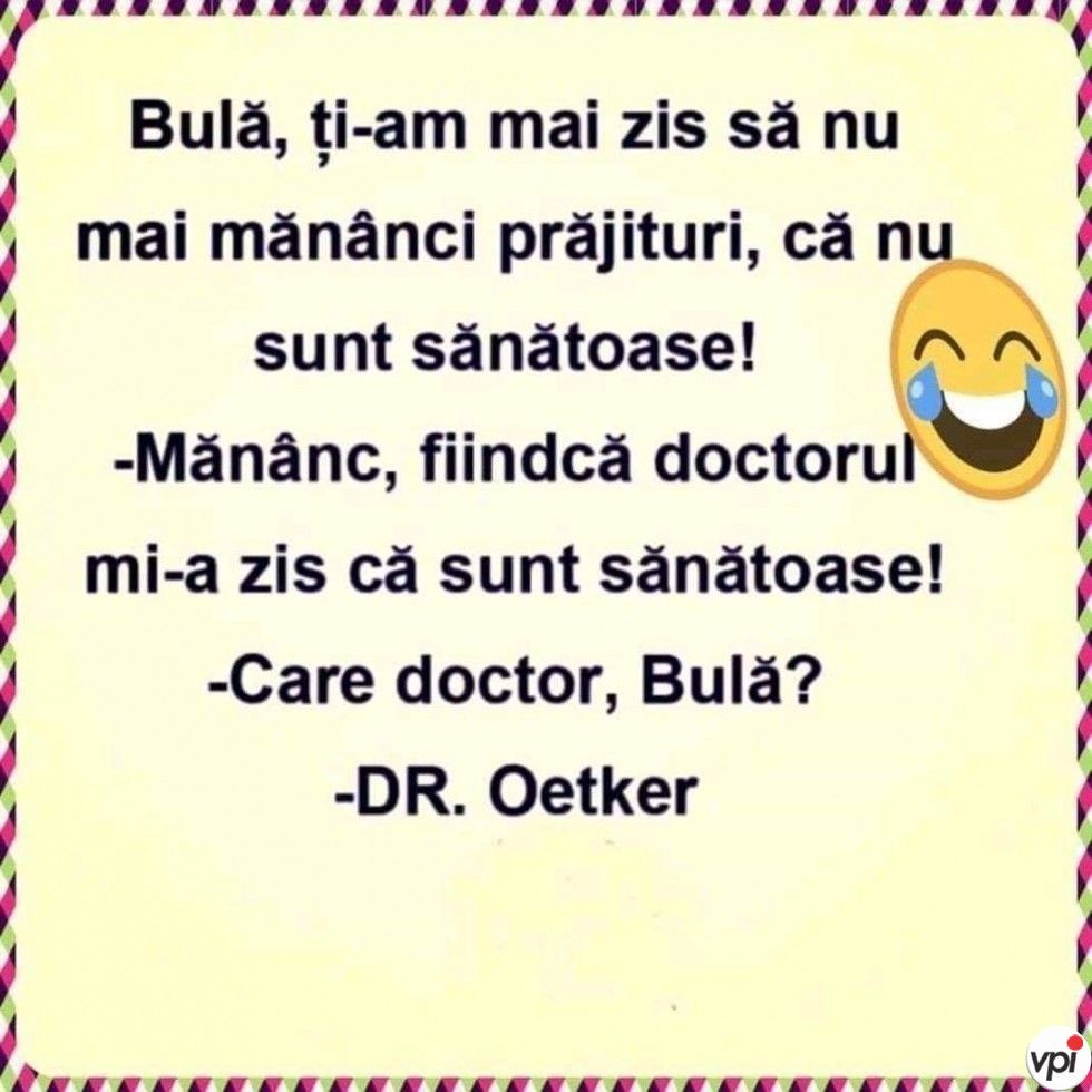„-Bulă, ți-am zis să nu mai mănânci prăjituri, că nu sunt sănătoase!
