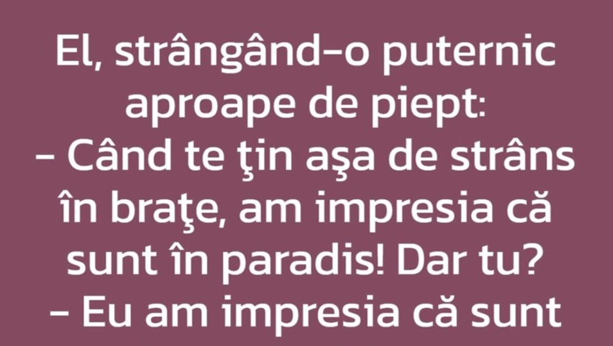 – Când te țin așa de strâns în brațe, am impresia că sunt în paradis! Dar tu?