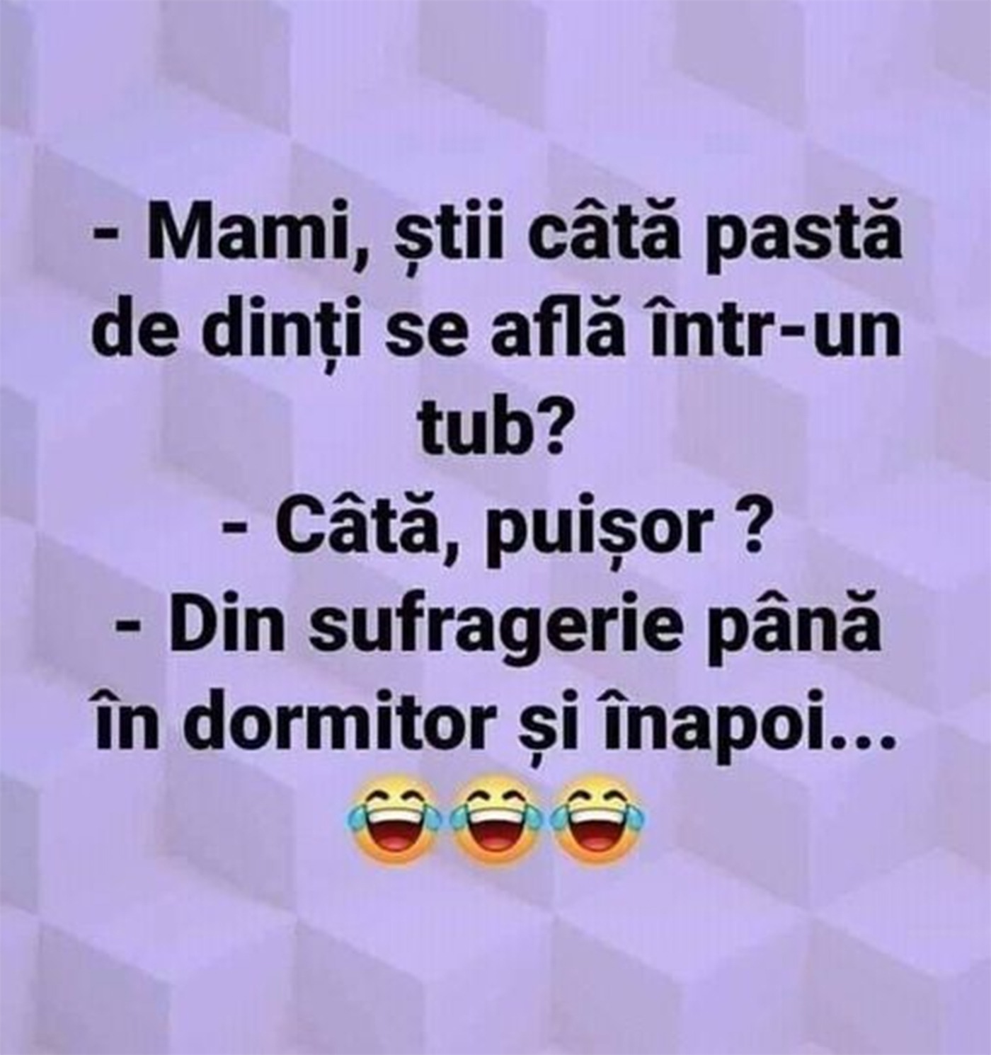 „ – Mami, știi câtă pastă de dinți se află într-un tub?