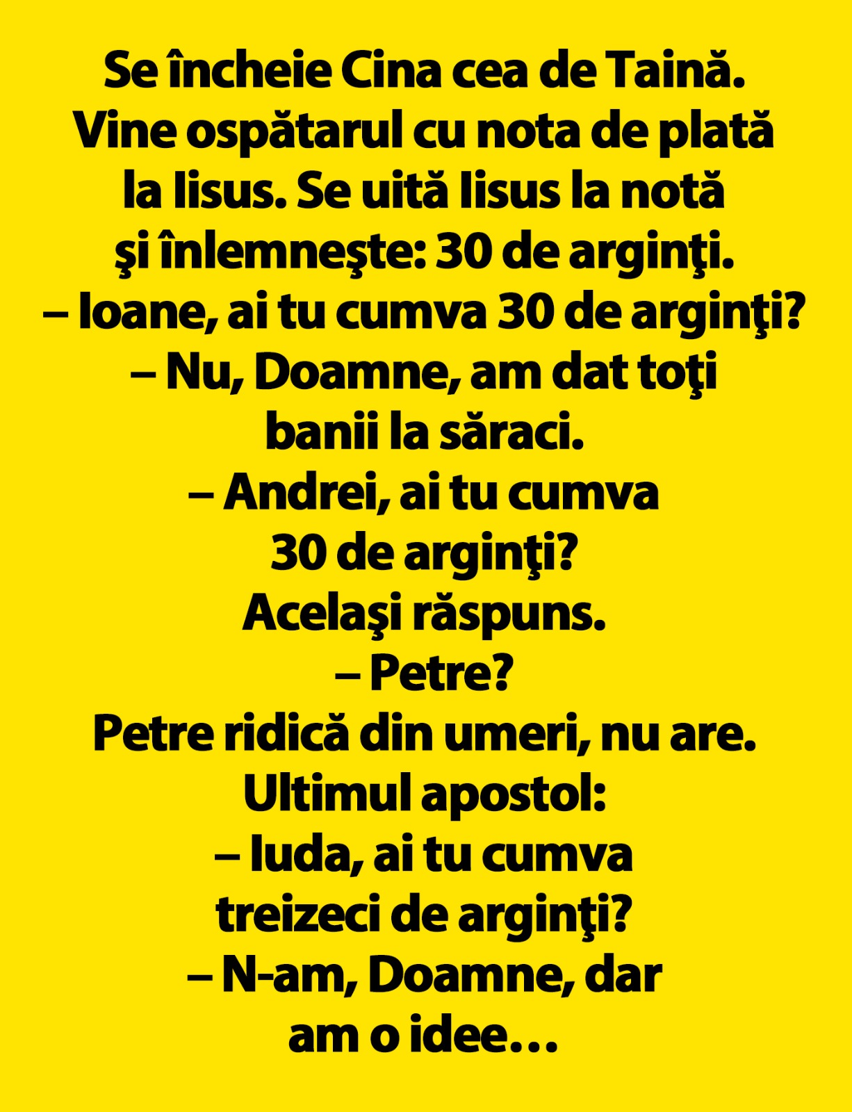 – Ioane, ai tu cumva 30 de arginţi?