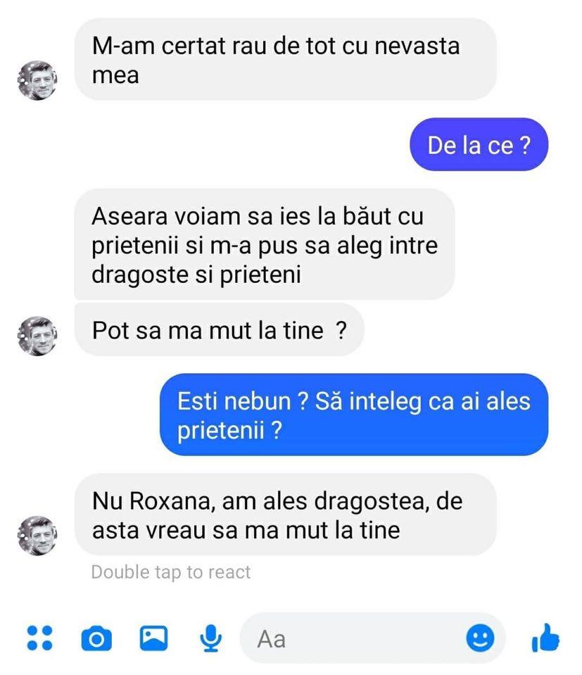 – Nu Roxana, am ales dragostea, de asta vreau să mă mut la tine.