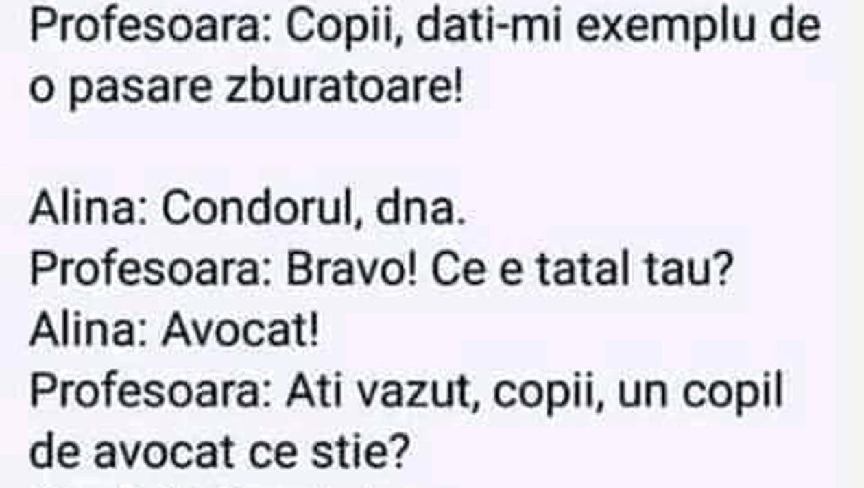 Profesoara: Ați văzut, copii, un copil de avocat ce știe?