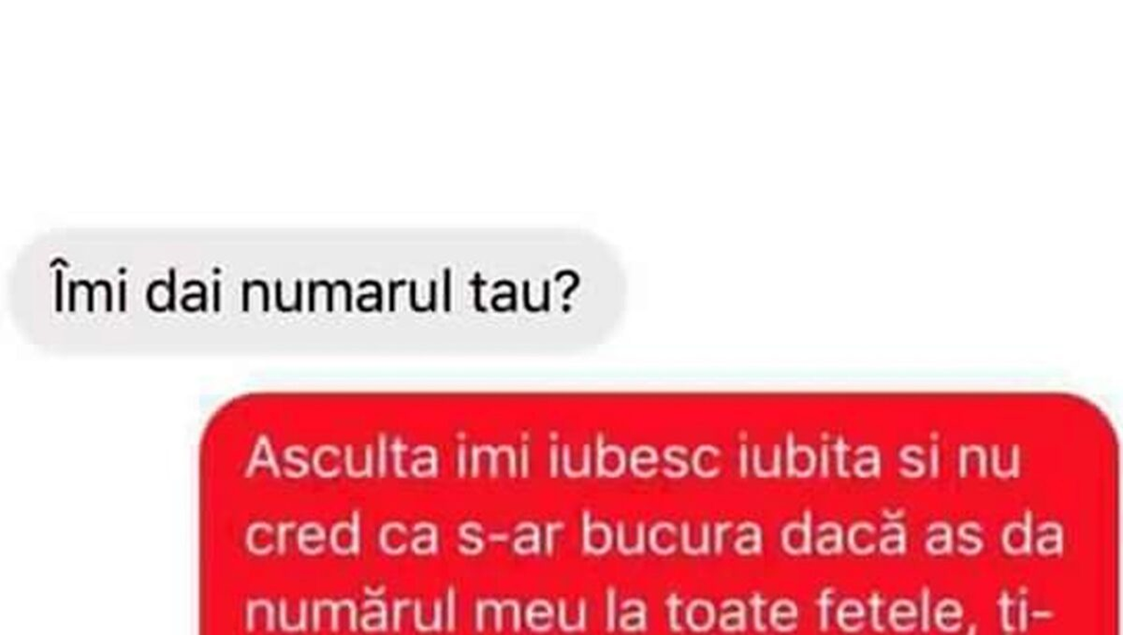 -Ascultă! Îmi iubesc iubita și nu cred că s-ar bucura dacă aș da numărul meu la alte fete, ți-am explicat de 0768239565 de ori!”, este bancul zilei.
