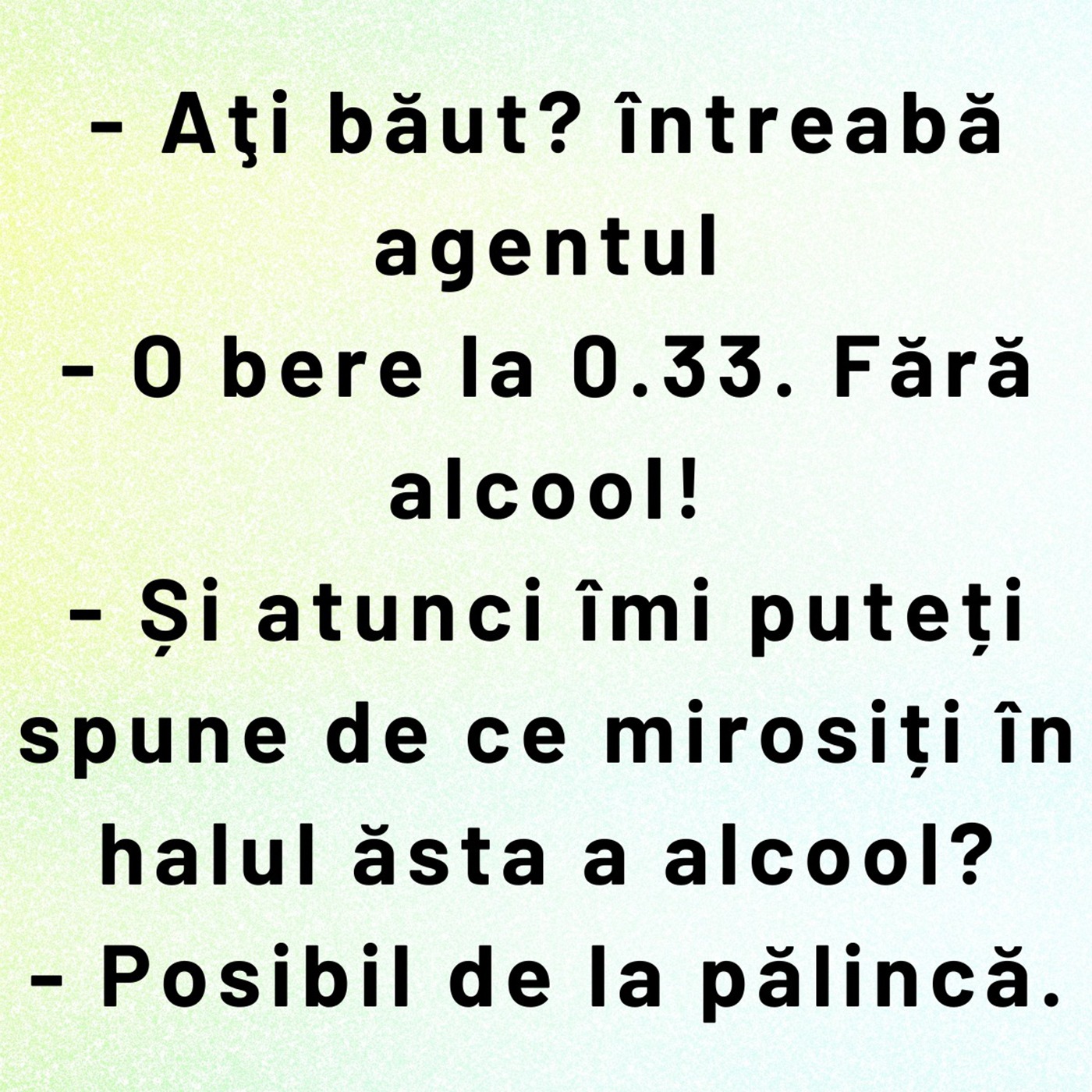 – Și atunci îmi puteți spune de ce mirosiți în halul ăsta a alcool?