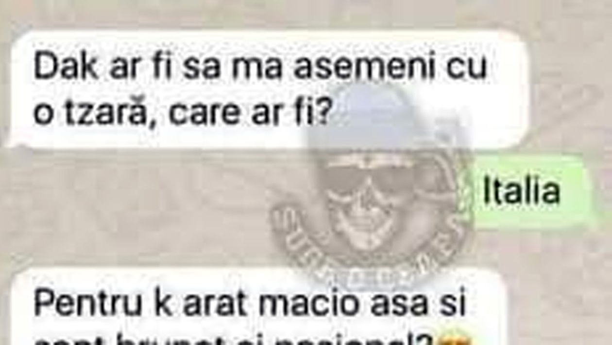 – Dak ar fi să mă asemeni cu o tzară, care ar fi? – Italia. – Pentru k arăt macio așa și sant brunet și pasional? – Pentru că ești prost ca o cizmă.