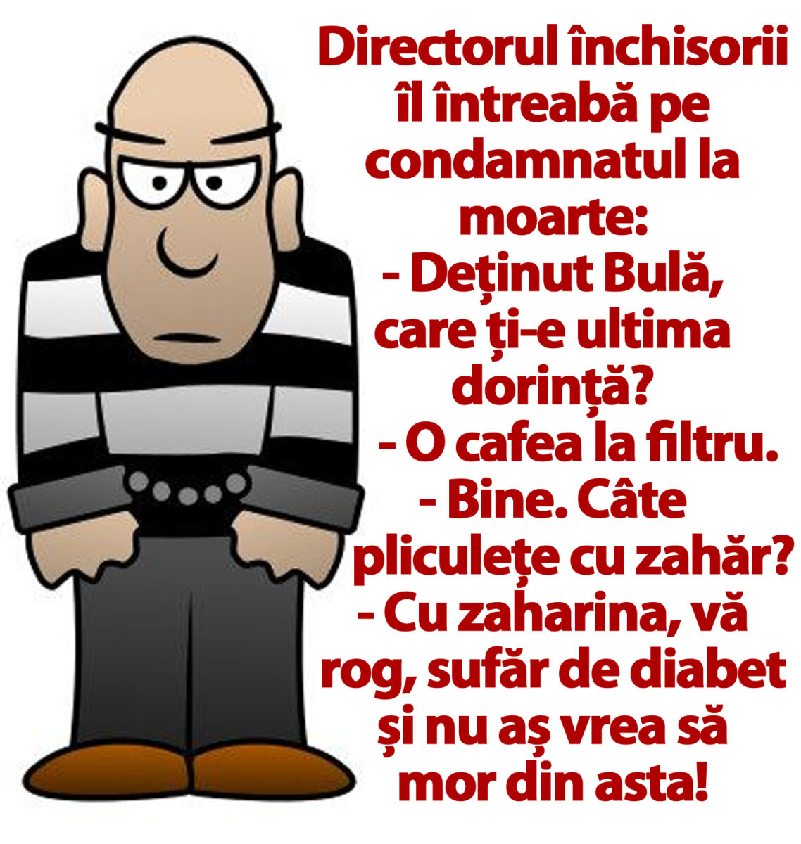 – Deținut Bulă, care ți-e ultima dorință?