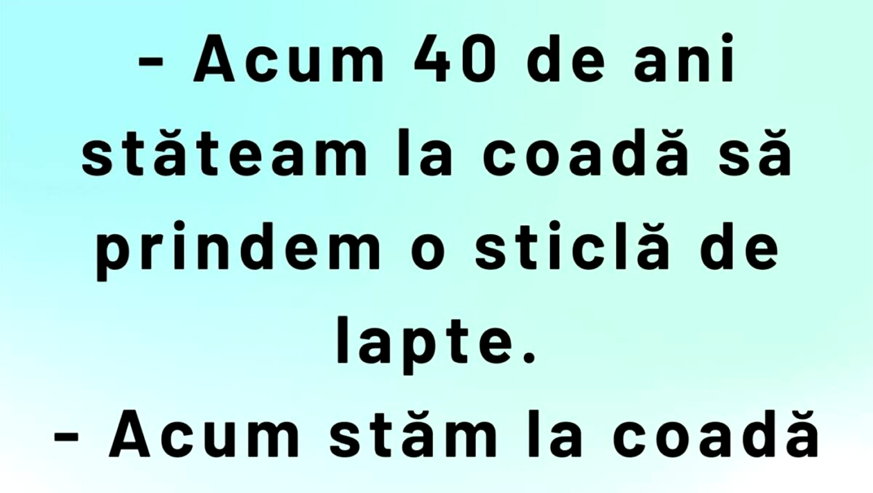 – Acum 40 de ani stăteam la coadă să prindem o sticlă de lapte.