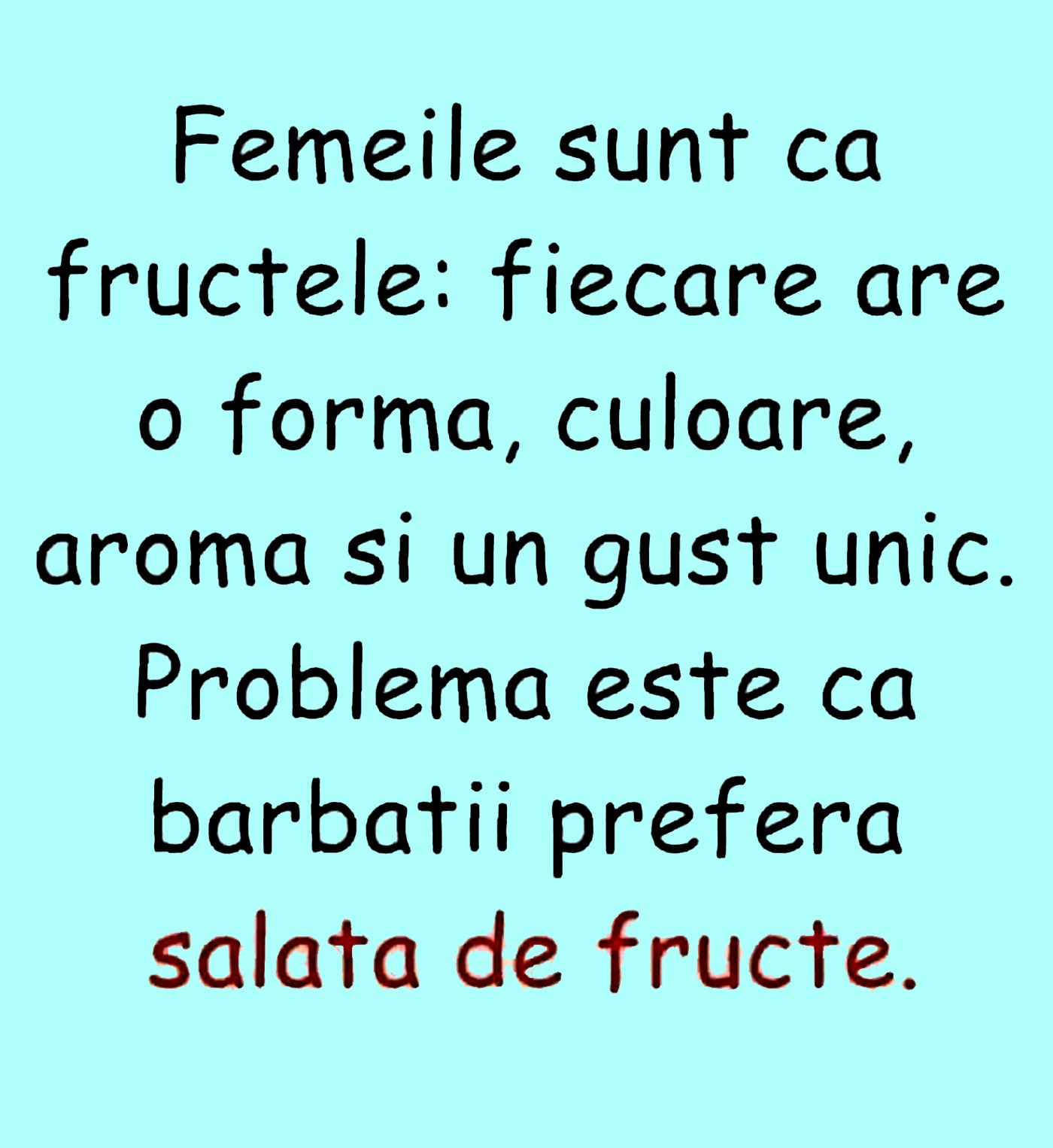 Problema este că bărbații preferă salata de fructe.