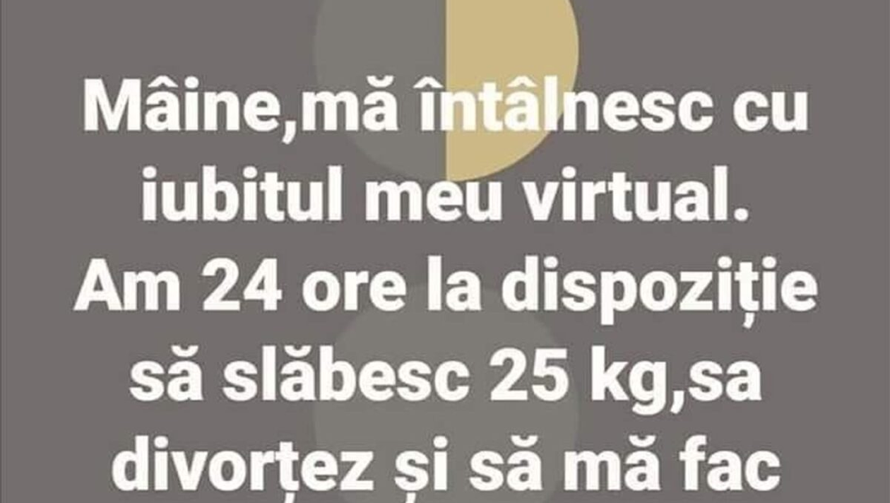 Dragi cititori, râsul este foarte important. Așadar, CANCAN.RO v-a pregătit un banc menit să vă aducă zâmbetul pe buze. Întâlnirile virtuale sunt din ce în ce mai dese. În era tehnologiei, mulți oameni își găsesc sufletul pereche pe internet. Dar nu tot timpul este așa cum își imaginează.