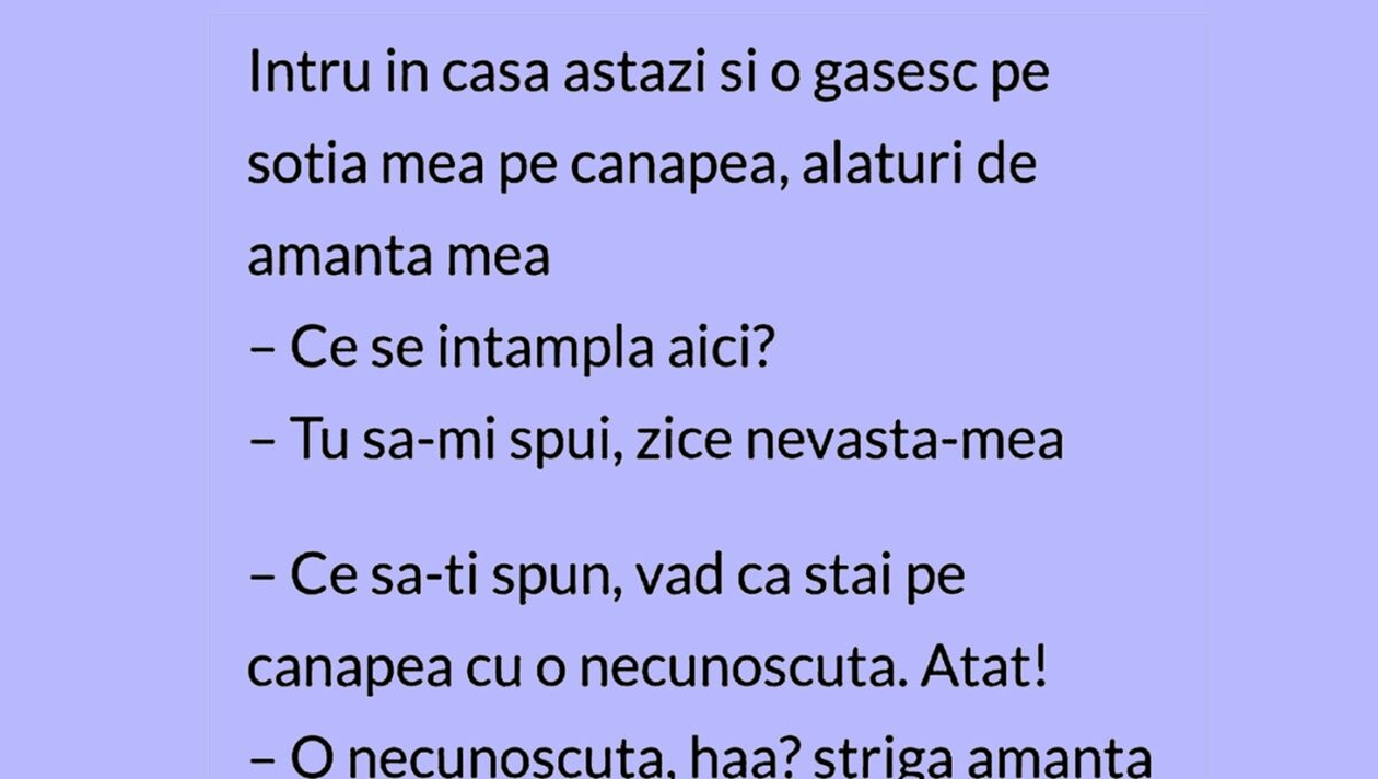 (VEZI ȘI: BANCUL ZILEI | „DOMNULE, NU ÎMI PLACE CĂ TE CULCI CU SOȚIA MEA”)