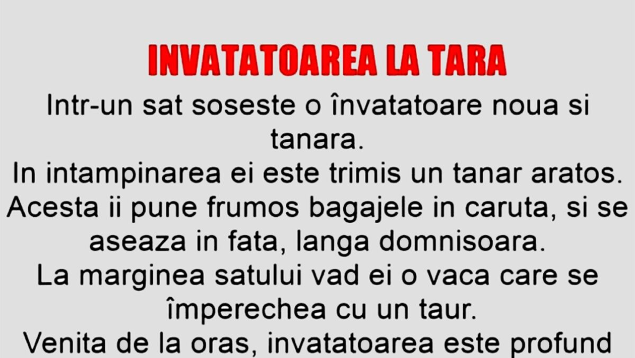 Acasă » Bancuri » BANCUL ZILEI | Învățătoarea la țară
