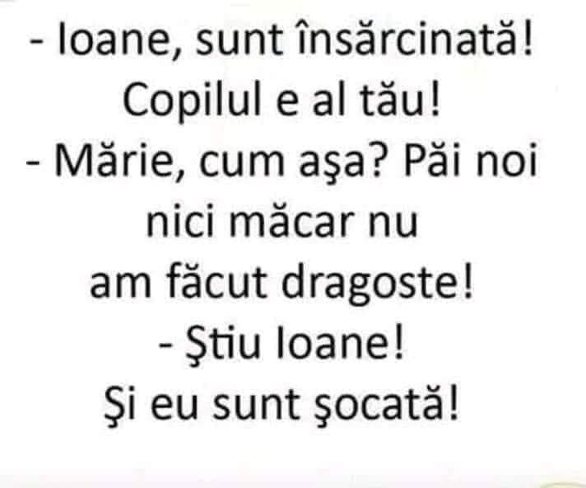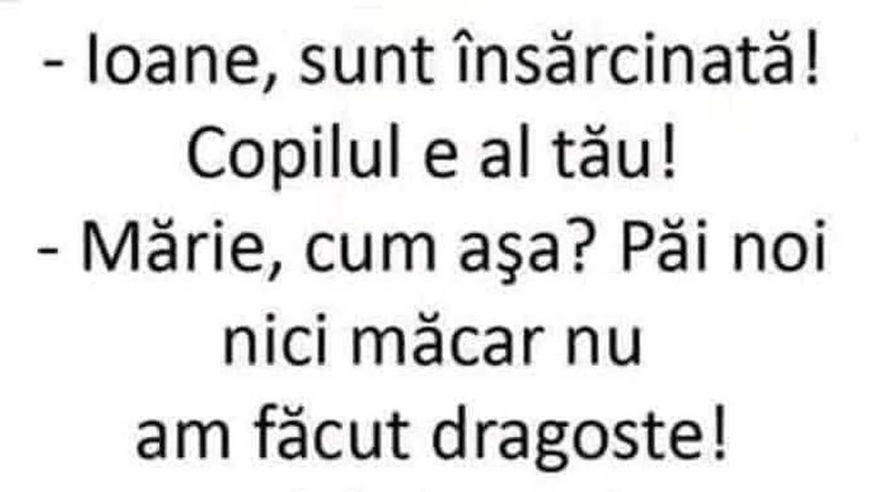 – Mărie, cum așa? Păi noi nici măcar nu am făcut dragoste!