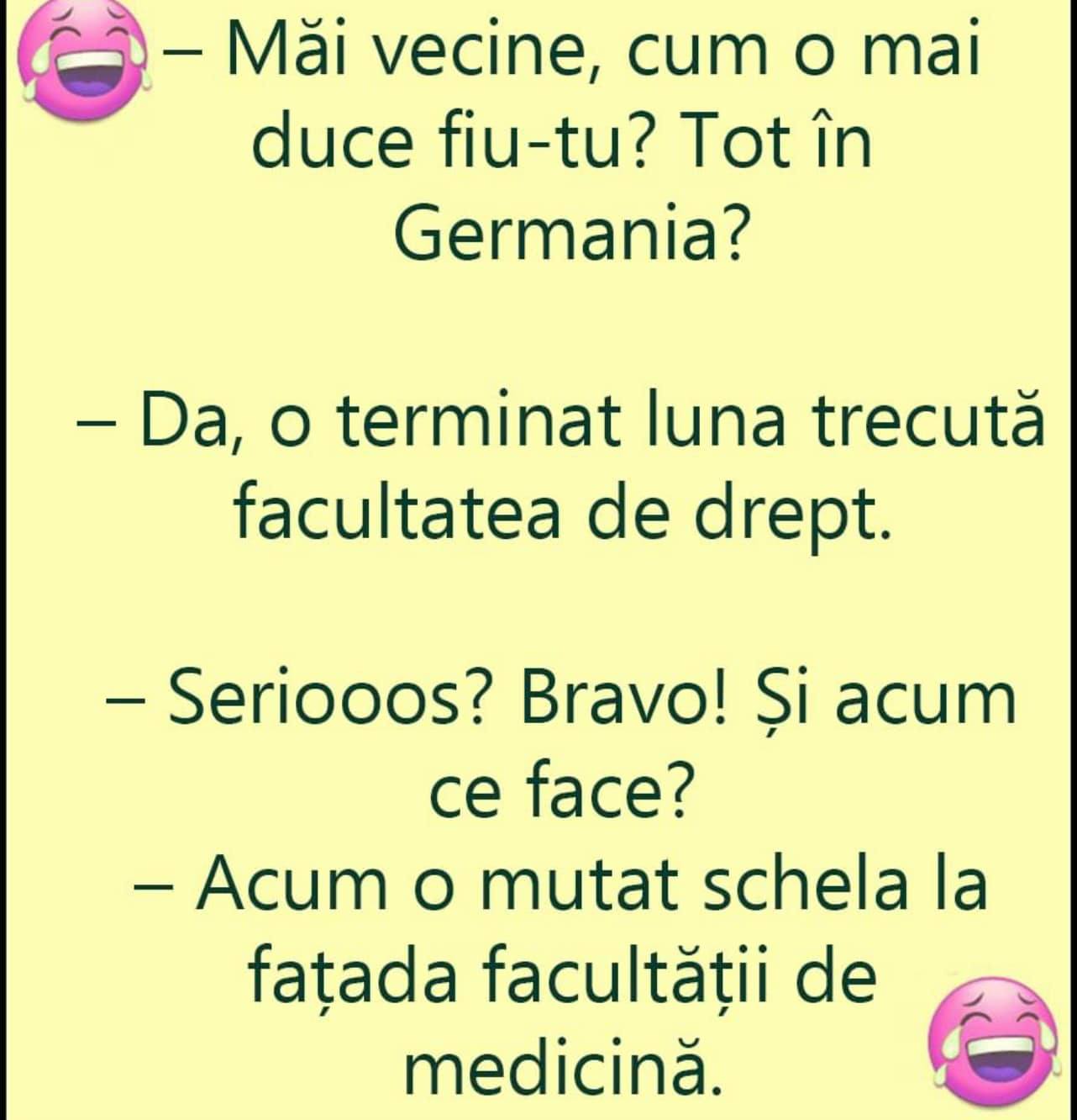 ”-Măi, vecine! Cum o mai duce fiul tău? Tot în Germania?