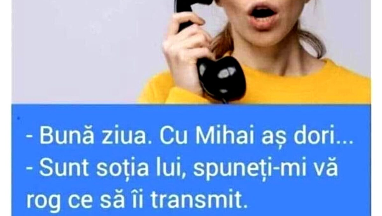 Este zi de weekend, de relaxare, așa că este momentul și pentru o porție copioasă de râs. Iar pentru asta am pregătit un banc care cu siguranță îți va aduce zâmbetul pe buze. Protagonista de astăzi este o soție, care vorbește cu amanta partenerului său. Deznodământul este hilar.