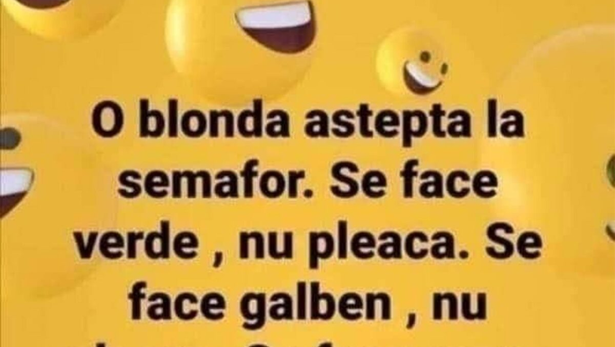 Este weekend, o zi perfectă pentru relaxare și voie bună. Bancul de astăzi îți va aduce un zâmbet pe buze cu siguranță. Protagoniștii de astăzi sunt o blondă care așteaptă la semafor și un polițist. Finalul este de-a dreptul amuzant!