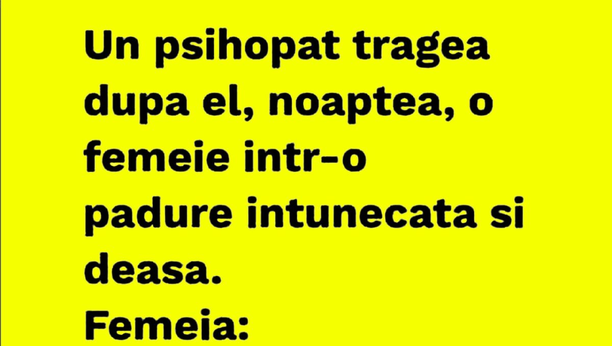 Dragă cititorule, pentru astăzi, CANCAN.RO ți-a pregătit bancul zilei, cea mai bună glumă din această sâmbătă! Ești pregătit să râzi cum nu ai mai făcut-o de mult timp? Spor și voie bună!