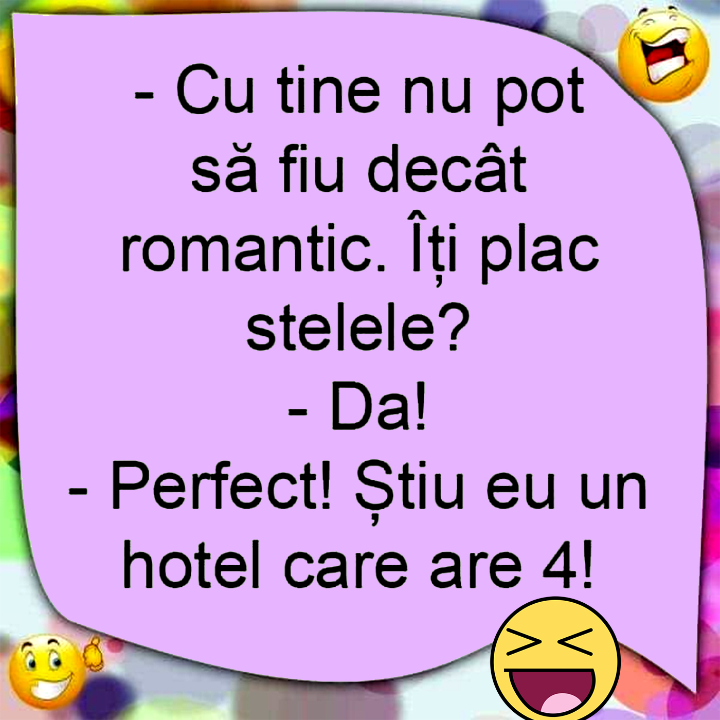 – Perfect. Știu eu un hotel care are 4”.