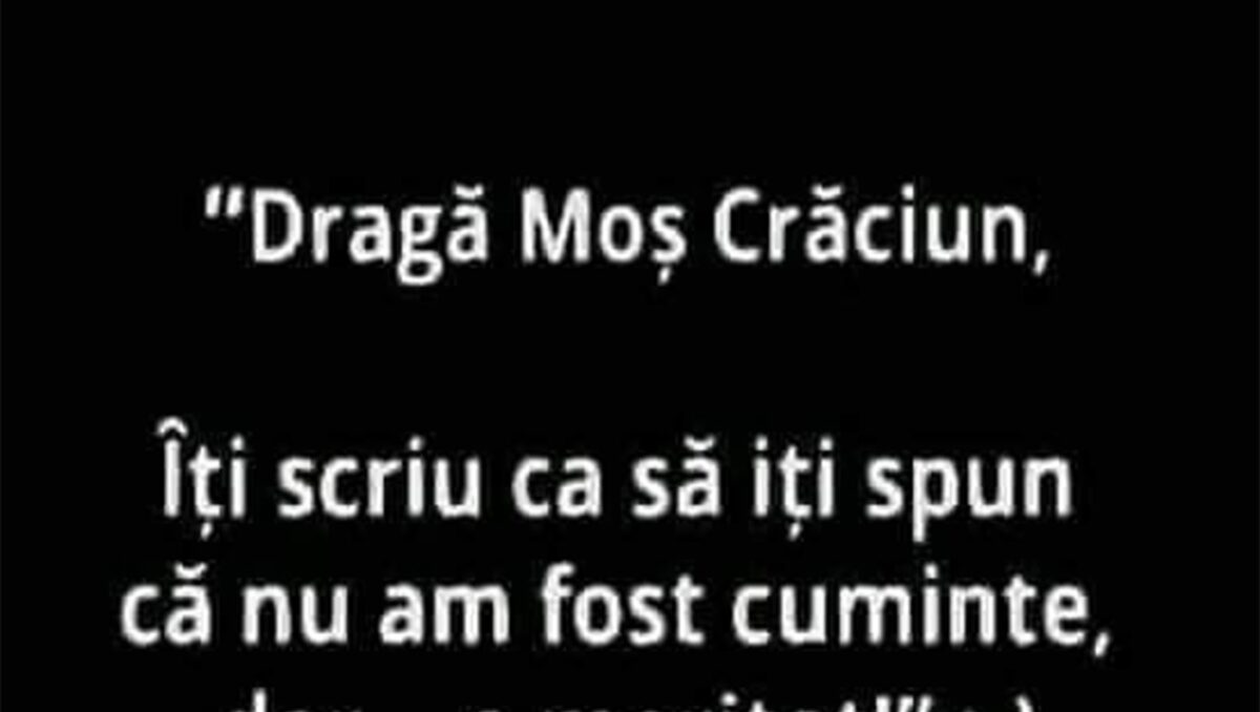 Nu trebuie să treacă nicio zi fără o porție copioasă de râs, iar pentru asta am pregătit o scrisoare către Moș Crăciun, care o să te amuze copios în perioada Sărbătorilor. Deznodământul este hilar.