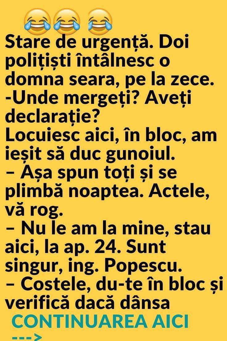 Bancul zilei. O femeie este prinsă de polițiști că iese afară în timpul stării de urgență.