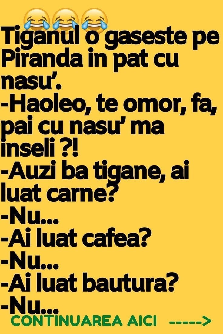 Unele dintre cele mai amuzante bancuri sunt cele care îi au în prim plan pe cetățenii de etnie romă. Automat, intervine și ideea de haz de necaz. Iar dacă la mijloc este vorba de infidelitate, lucrurile se complică și mai mult. În sensul bun, bineînețeles. Spor la râs!