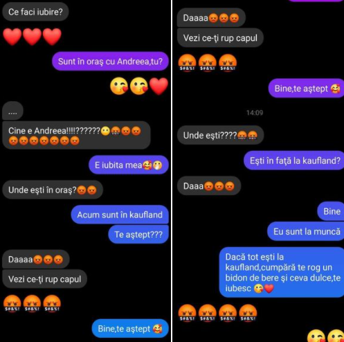 -Bine. Eu sunt la muncă. Dacă tot ești la Kaufland, cumpără, te rog, un bidon de bere și ceva dulce. Te iubesc!”