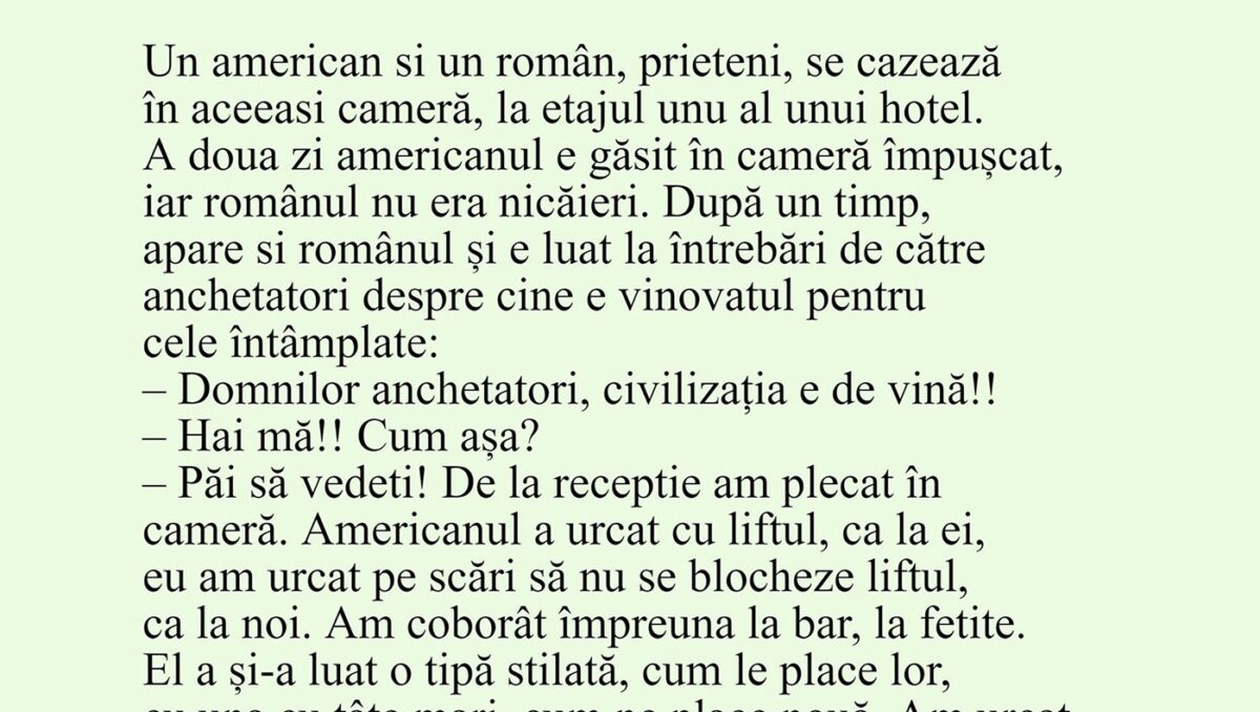 BANCUL ZILEI | Un român și un american se cazează în aceeași cameră, la etajul 1 al unui hotel