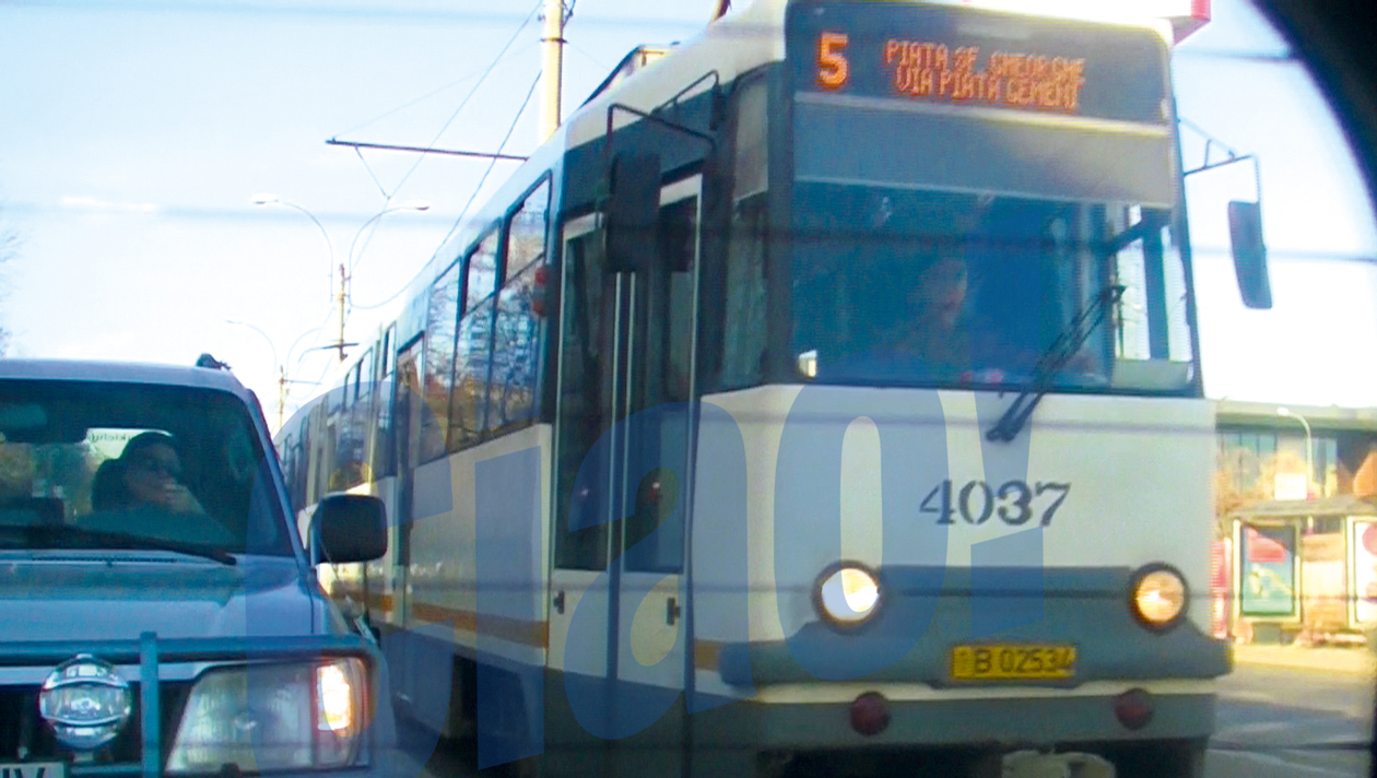 In spatele lui, tarr-tarr, se apropia un tramvai plin ochi cu oameni care, probabil, se rugau sa ajunga intregi si, cat mai repede, la statia urmatoare. Si ar fi facut-o, daca SUV-ul lui Banica nu le-ar fi tinut calea. Aflat pe linie, dar cu ochii la semaforul pentru masini, artistul nu a observat ca cel pentru tramvaie arata verde.