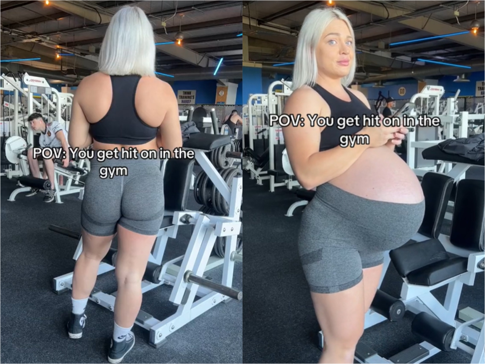 Într-un videoclip încarcat pe TikTok, instructoarea este filmată din spate, purtând o pereche de clonați scurți de gimnanstică și o bustieră sport. La un moment dat, un bărbat pare să încerce să o abordeze și să înceapă o conversație cu ea. ”Scuzați-mă, domnișoară. Veniți des aici?”, întreabă bărbatul. Maria nu a trebuit să-i ofere un răspuns verbal acestuia. Imediat cum s-a întors cu fața spre el, răspunsul a fost mai mult decât evident. Tânăra este însărcinată cu gemeni, iar în doar câteva săptămâni urmează să nască, ceea ce înseamnă că burta de gravidă este impresionantă – însă invizibilă din spate. Posibilul pretendent a avut parte de un șoc și nu a mai avut putere decât să afirme: ”Oh, bine atunci” – după care s-a retras și a făcut cale întoarsă.