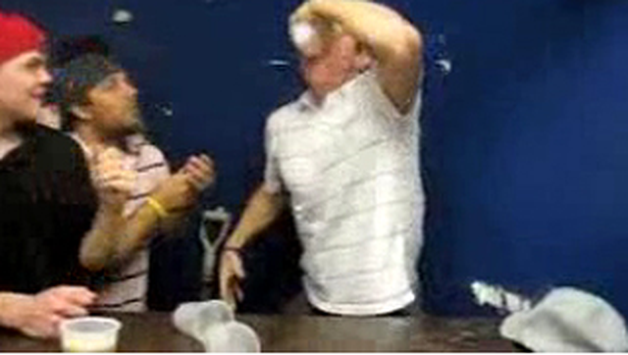 Americanul din imagini poate fi un prieten de nadejde la petreci. Te asigura ca nu ai dat banii degeaba pe alcool. Omul a reusit sa bea sase pahare de bere in mai putin de 10 secunde. Ca sa fie sigur ca nu poate sa il conteste nimeni el si-a adus si prieteni cu el pentru a-l sprijinii in „gloriosul” demers. Daca la bere se descurca asa de bine, credeti ca la tarie poate sa atinga aceeasi performanta?