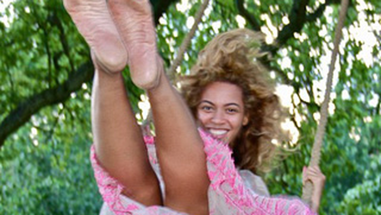 In doua dintre pozele postate pe internet chiar de catre cantareata, aceasta apare fara machiaj, imbracata intr-o rochie lunga, intr-un leagan. Sotul ei rade alaturi de diva, in timp ce impinge leaganul. mai mult chiar, lui Beyonce i se vad foarte bine picioarele, pe langa entuaziasmul evident.