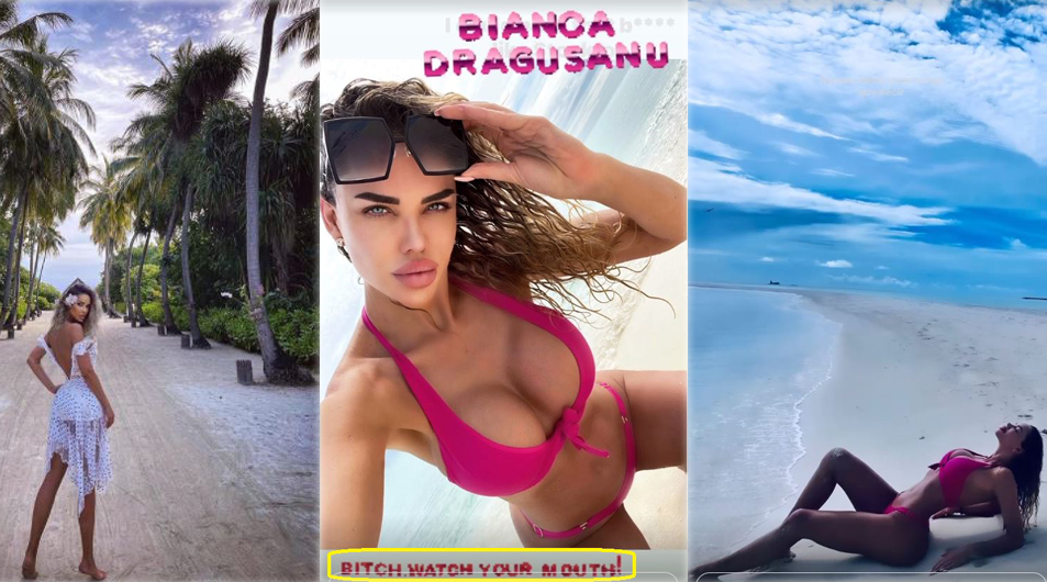 Astăzi, Bianca Drăgușanu a părăsit paradisul exotic din Insulele Maldive împreună cu Gabi Bădălău, care este foarte tandru cu ea. La scurt timp după ce s-a urcat în avion, afacerista a aflat câteva amănunte care au deranjat-o și au făcut-o să se simtă foc și pară. Fiind o persoană colerică, ea a postat o poză de colecție din vacanță, iar pe ea a așternut următorul mesaj: “Bitch watch your mouth (n.r.: C#&^@, ai grijă ce scoți pe gură)”.