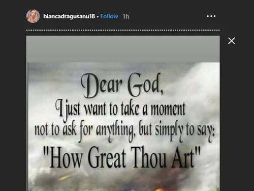 La câteva ore bune după ce Alex Bodi a făcut primele declarații despre divorțul de Bianca Drăgușanu și problemele apărute zilele trecute între ei, vedeta a publicat pe Instagram poza de mai jos, însoțită de următorul mesaj scris în limba engleză: “God doesn’t give the hardest battles to his toughest soldiers. He creates the toughest soldiers through life’s hardest battles… #blessed #free #smile #thebestisyettocome (…)”. Acesta se traduce astfel: “Dumnezeu nu dă cele mai grele lupte celor mai duri soldați ai săi. El creează cei mai duri soldați prin bătăliile cele mai grele din viață… # binecuvântată #liberă #zâmbet #CeEMaiBunUrmeazăSăApară (…)”.