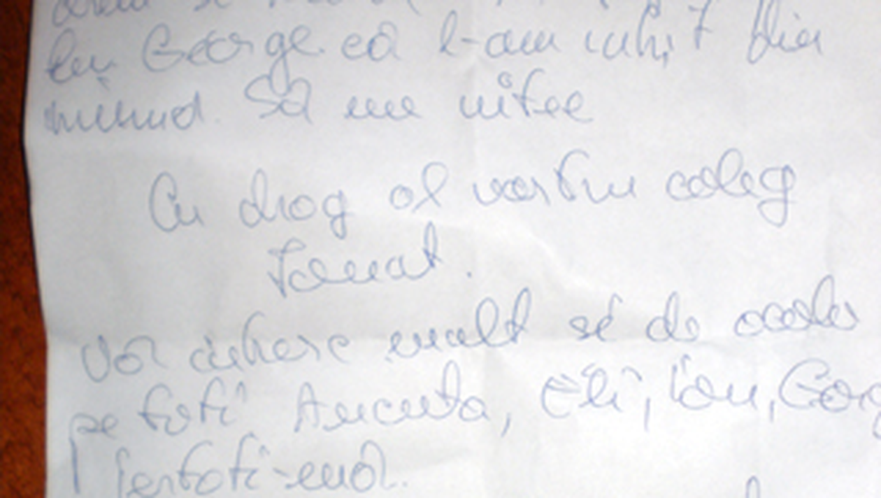 Tanarul a lasat un bilet de adio la serviciu in care il ruga pe iubitul sau, George, sa vina sa-l conduca pe ultimul drum. „Sa-i spui lui George ca l-am iubit din inima. (…) Te iubesc George. Iarta-ma. Te sarut pe gurita” a scris sinucigasul in biletul de adio.