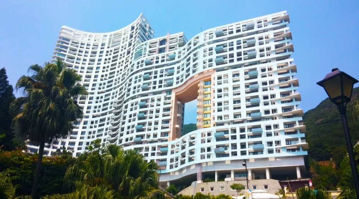 Blocurile cu găuri în mijloc se află în Hong Kong, China. Orașul este cunoscut în întreaga lume pentru celebrele clădiri zgârie-nori, însă puțini sunt cei care știu că aceste imobile un spațiu în centrul construcției.