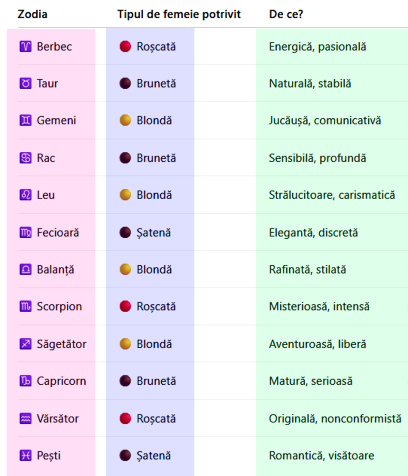 Spune-mi ce zodie ești, ca să îți spun ce fel de femeie ți se potivește! Blonde, brunete sau roșcate, nativii își aleg partenerele de viață după anumite caracteristici.