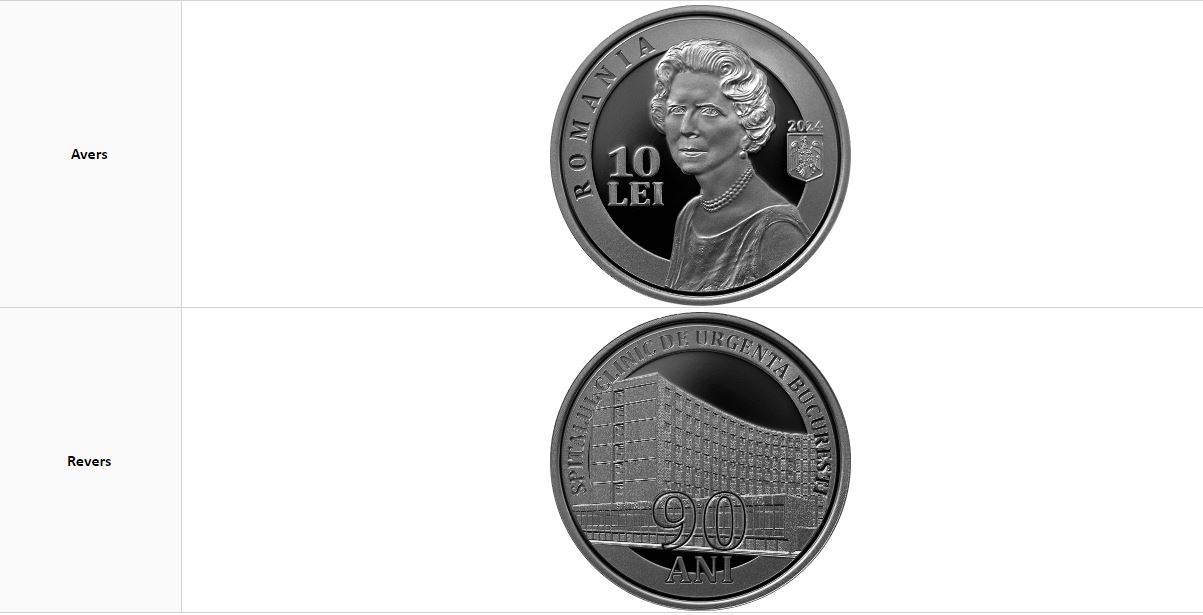 În cursul zilei de luni, 22 aprilie 2024, BNR a lansat o nouă monedă din argint. Este vorba despre o monedă care are valoarea nominală de 10 lei. Aceasta are tema „90 de ani de la înființarea Spitalului Clinic de Urgență București”.