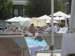 Am putea spune că ceva a deranjat-o pe brunetă, pentru că, la un moment, și-a aprins o tigară şi a început să gesticuleze, destul de nervoasă. Situaţia s-a mai liniştit după ce un tânăr care a admirat-o încă de când a păşit la piscină şi-a făcut curaj şi a intrat în vorbă cu ea. Bărbatul i-a cerut o brichetă, iar Raluca i-a oferit-o imediat.