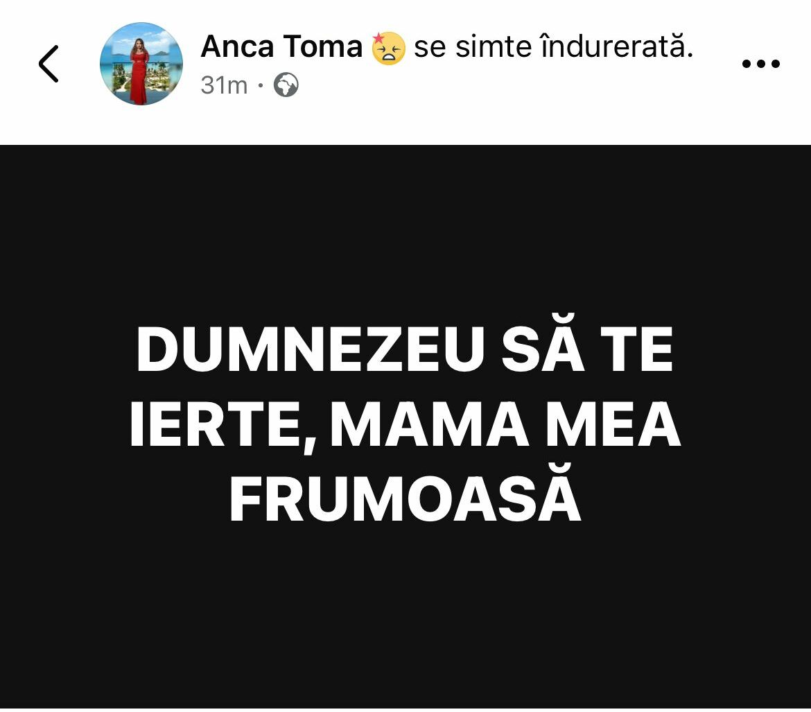 „Dumnezeu să te ierte, mama mea frumoasă”, a scris Anca pe Facebook.